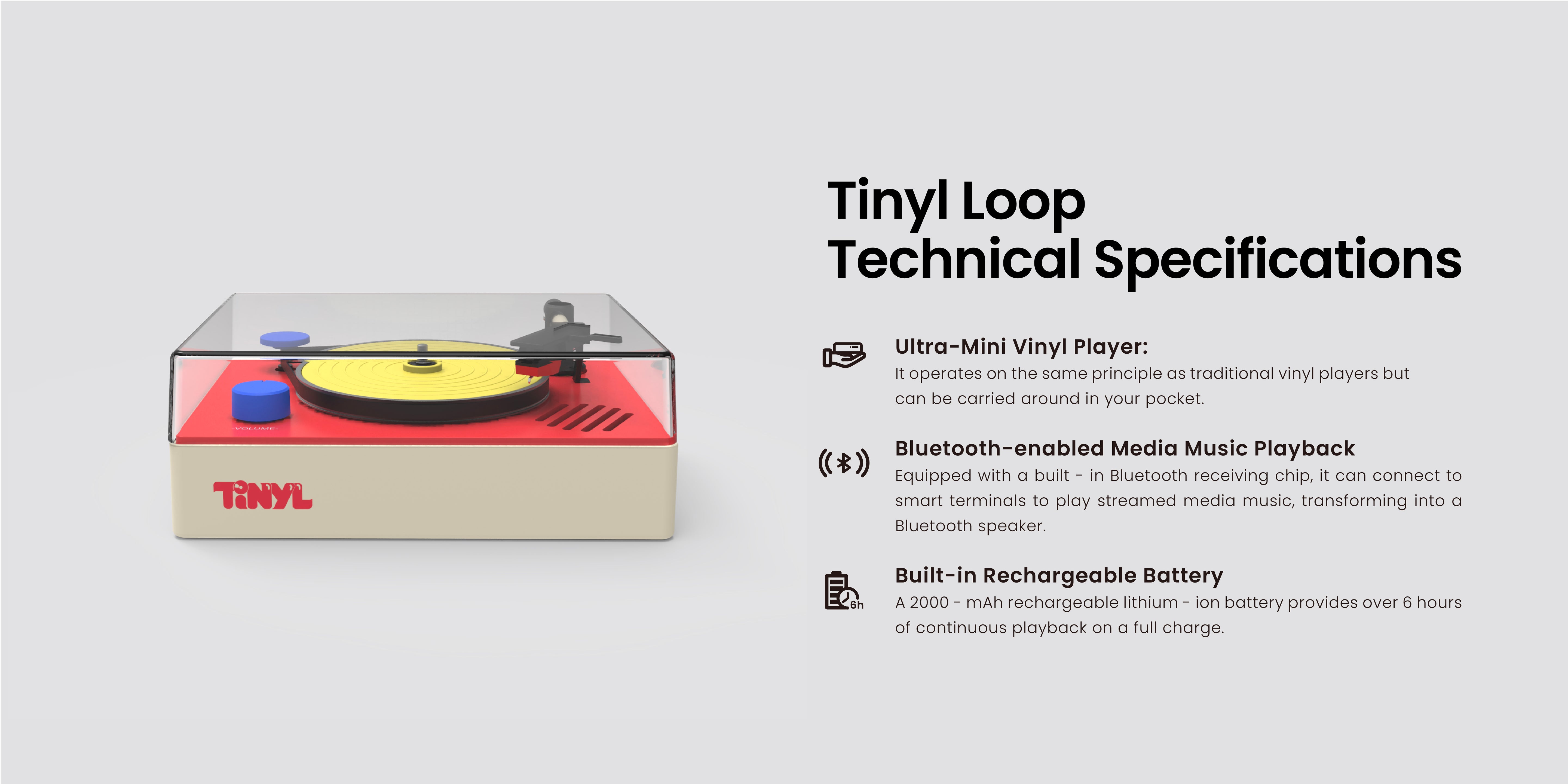 I'm absolutely in love with my TINYL loop! Its compact size fits perfectly on my bedside table, and the sound quality is surprisingly good for such a small device. Playing my 3 - inch mini vinyl records on it feels like a magical journey back to the analog era. Plus, the Bluetooth function comes in handy when I want to stream music from my phone. It's truly a versatile and charming music companion!