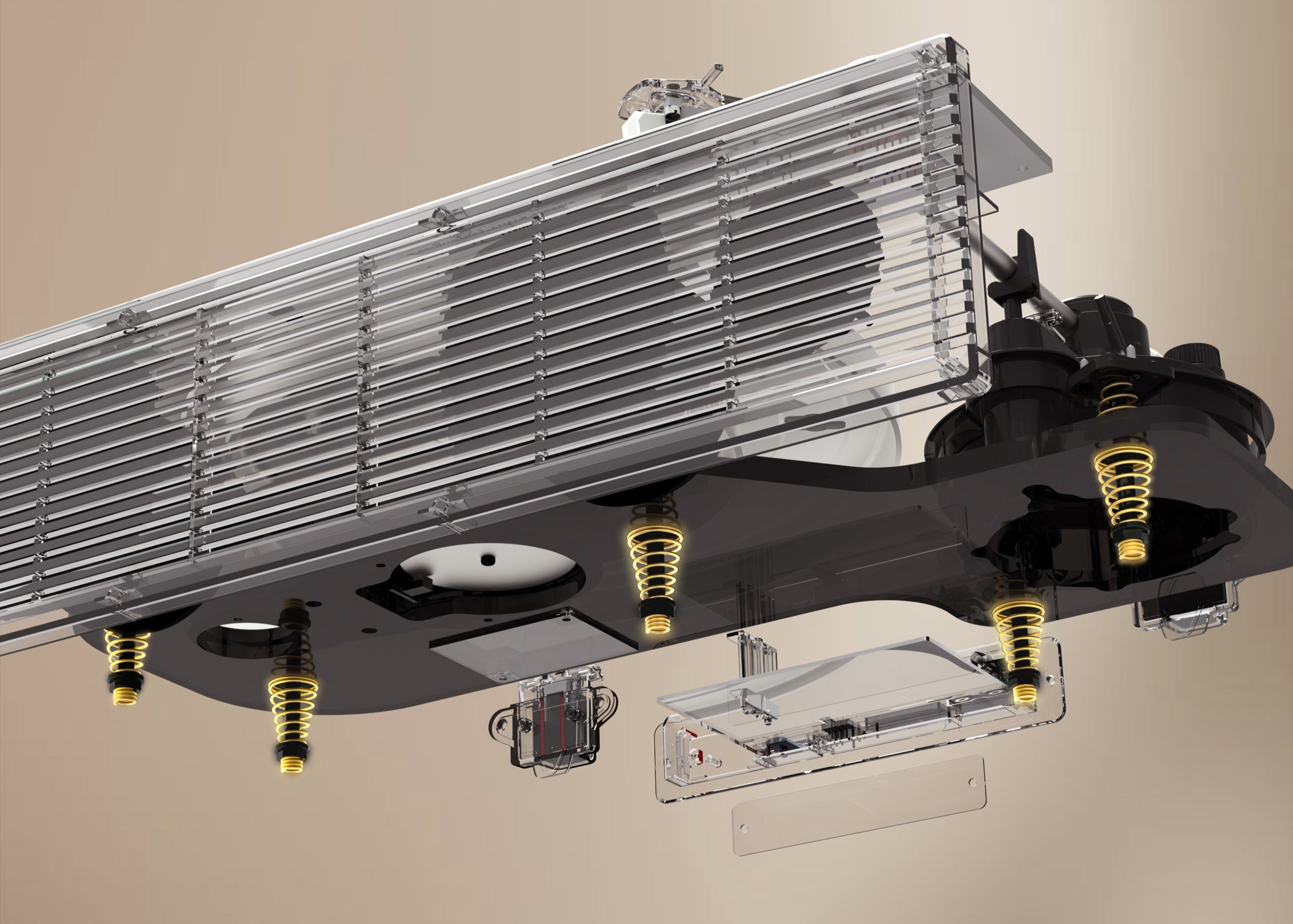 This innovative design features 10 - stage variable - diameter springs in a suspension setup. It acts as a sophisticated shock - absorber, effectively isolating the turntable from external vibrations. As a result, the risk of resonance and needle skipping is significantly diminished, ensuring a smoother and more stable vinyl playback experience.