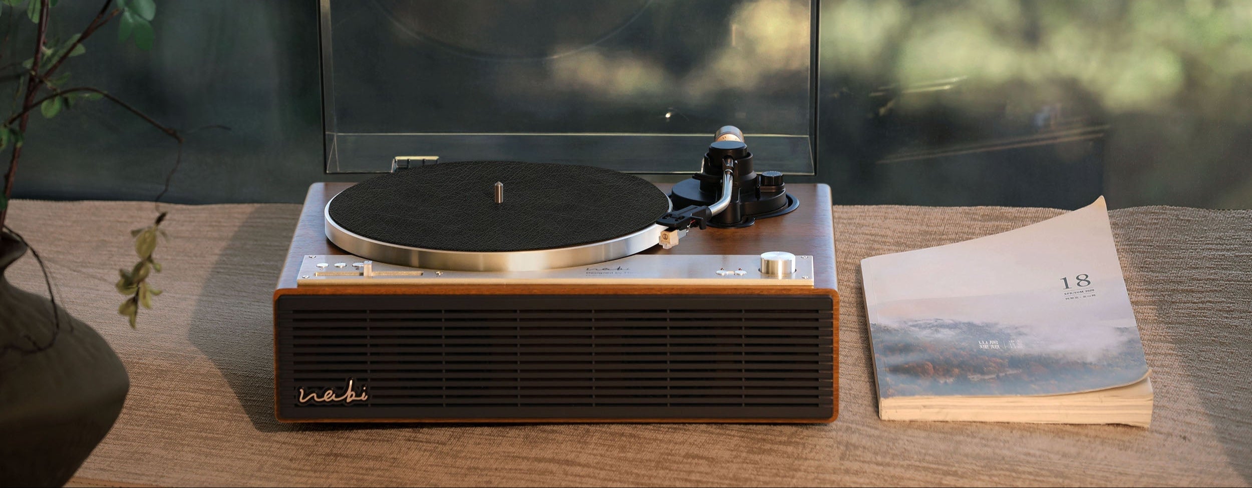 | Inspired by the aesthetics of Wabi-Sabi, this turntable is equipped with a professional-grade DAC chip and four built-in mid-to-high frequency speakers with a total output of 100W. The Audio-Technica AT-3600 cartridge, along with adjustable tracking force, ensures stable and precise playback. With support for both Bluetooth input and output, it offers greater versatility across various listening scenarios. |